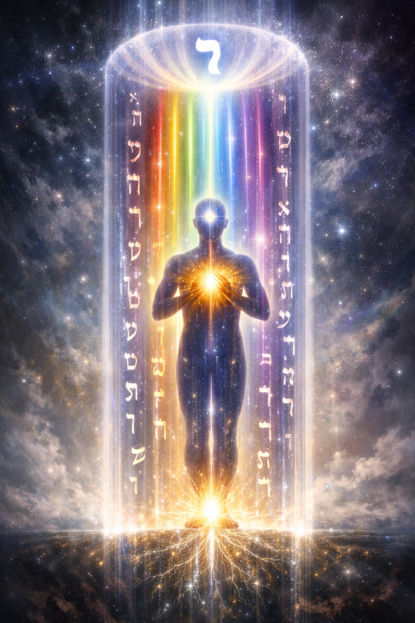 alineación del eje cuerpo–alma–conciencia mediante sonido hebreo como tecnología vibracional.